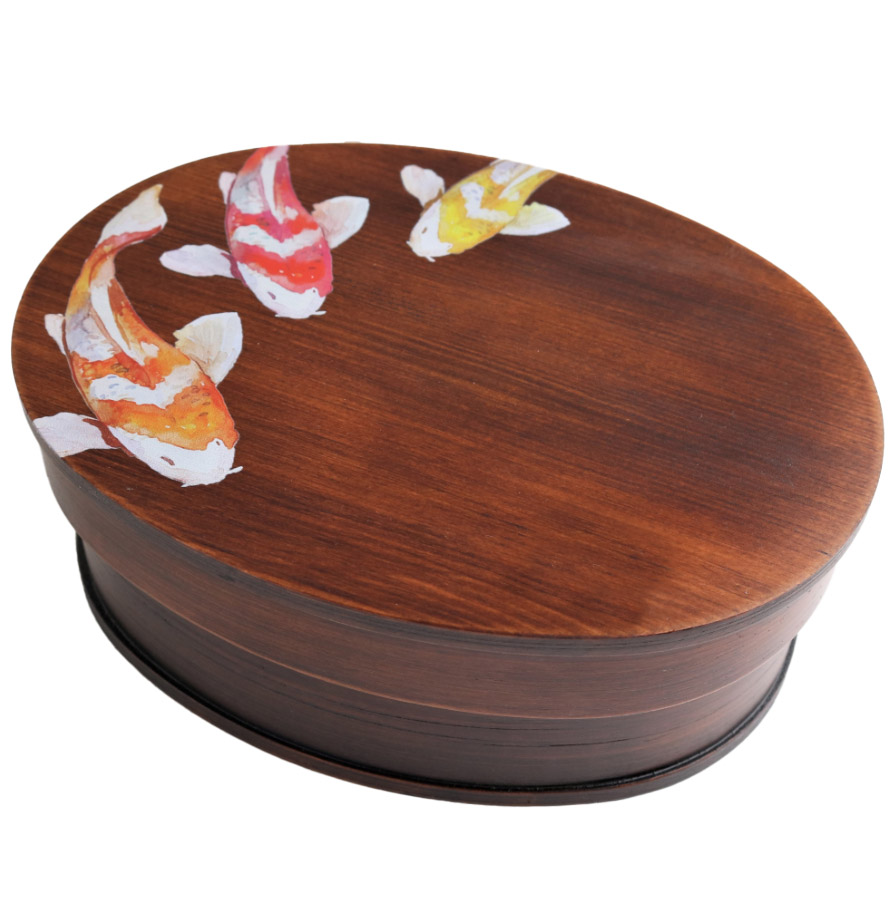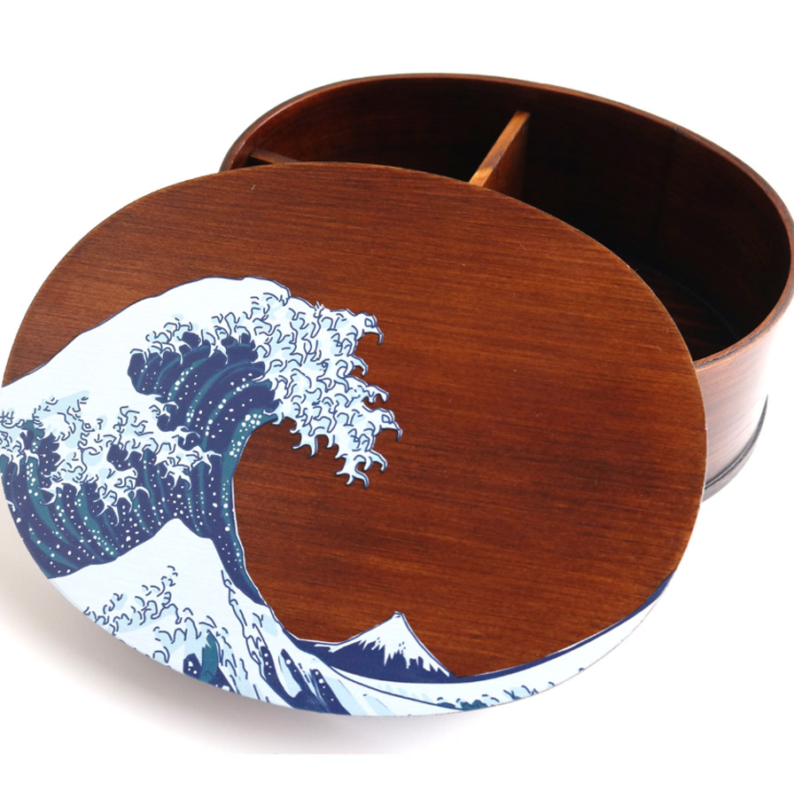 Nos boîtes à bento entièrement en bois de cèdre (hinoki) vous permettent de manger sainement en dehors de chez vous sans particules plastiques. Elles sont toutes fabriquées en bois par des artisans à Wakayama. Elles sont cintrées à la main après avoir été plongées dans l’eau pendant 1 nuit entière. Ces boites cintrées en bois s’appellent « Wappa » en japonais. Elles sont ensuite peintes de motifs japonais sur le couvercle. Elles donnent un parfum boisé à votre riz et possède de lègères propriétés antibactériennes naturelles. Il faut 1 mois à un artisan pour finaliser une seule boite. Les clous des boîtes sont en bambou, et parfois en écorces de bois de cerisier.